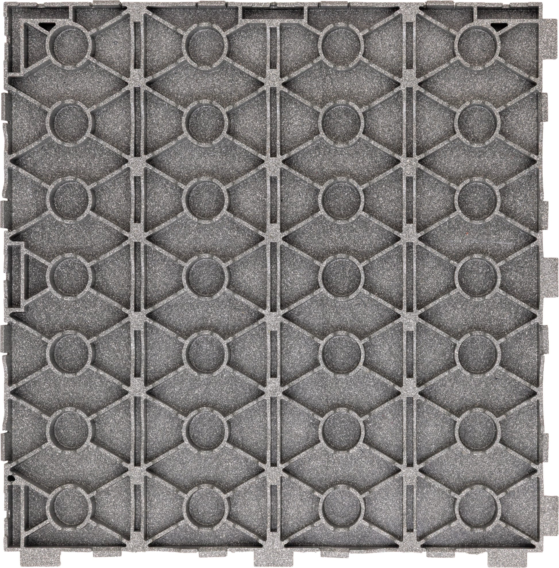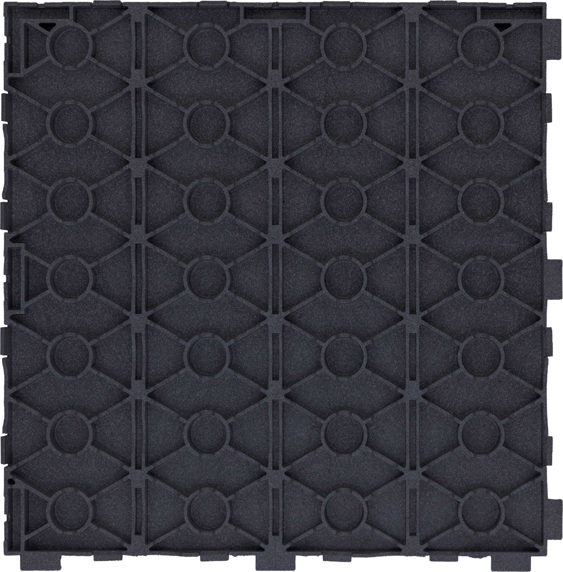 Dalle modulable en matériau composite recyclé pour terrasses, balcons et zones humides. Pose sans colle ni vis, avec base drainante & ventilée pour évacuer l’eau et accélérer le séchage. Format 31 × 31 × 15 mm (≈ 11 dalles / m²) • Garantie 10 ans.
